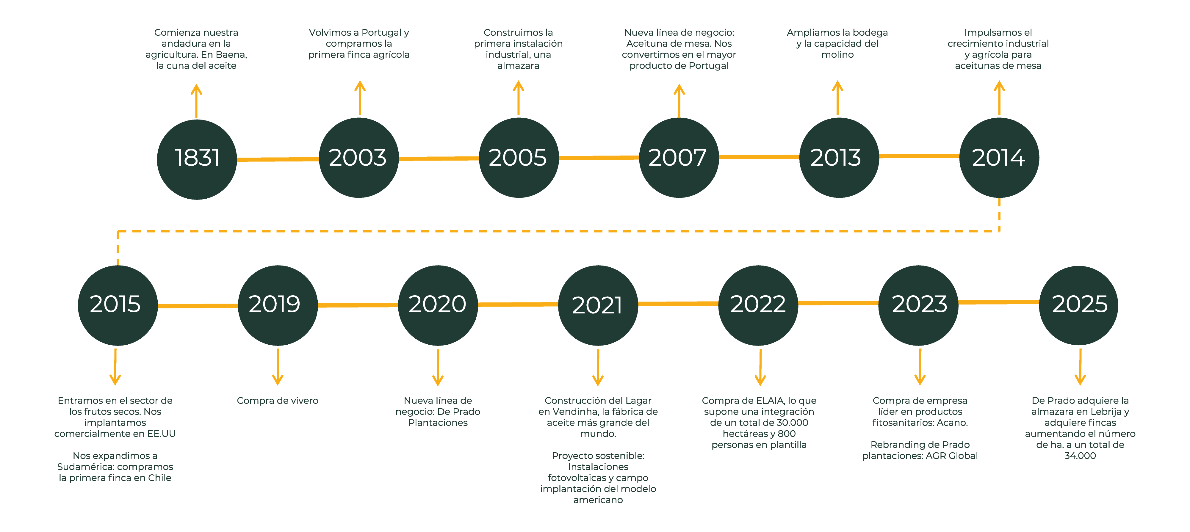 Desde nuestros comienzos en 1831, cuando dimos los primeros pasos en el mundo agrícola en Baena, considerada la cuna del aceite, hemos trazado una trayectoria de crecimiento constante y significativo, marcada por hitos cruciales que han definido nuestra evolución como empresa.